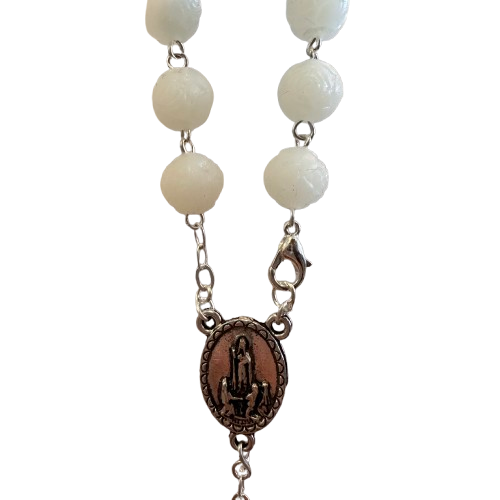 Dezena em metal com medalha de Nossa Senhora de Fátima, luminosa. Existe em dois tamanhos.