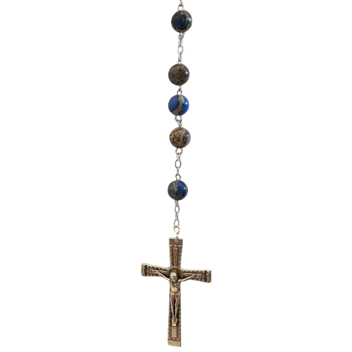 Terço em Pedra Semipreciosa Imperador Azul.