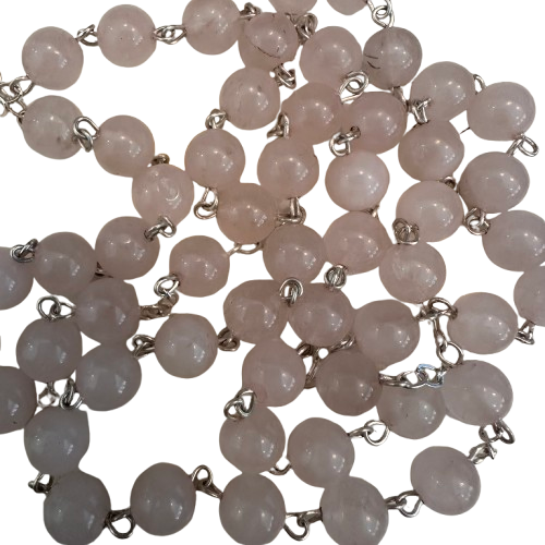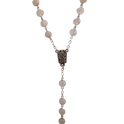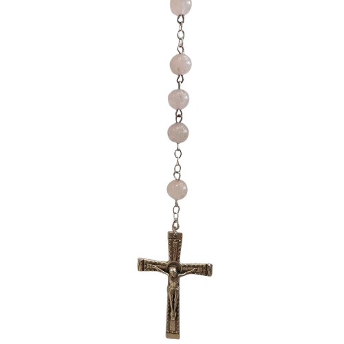 Terço em Pedra Semipreciosa Quartzo Rosa.