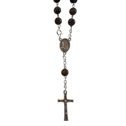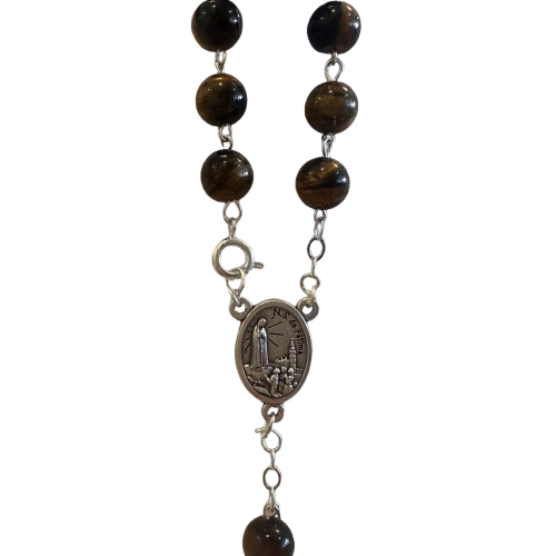 Dezena de Nossa Senhora de Fátima em pedra semipreciosa Olho Tigre.