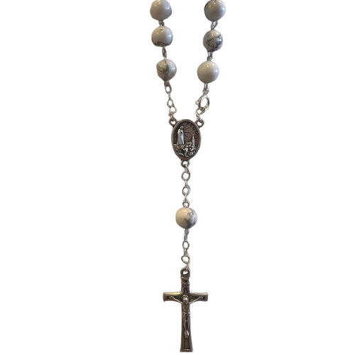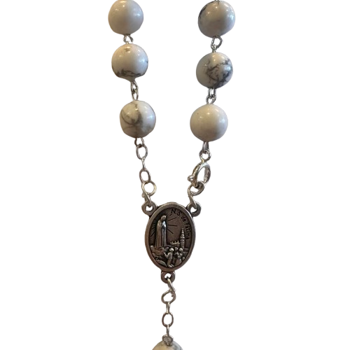 Dezena de Nossa Senhora de Fátima em pedra semipreciosa Howlita Branca.