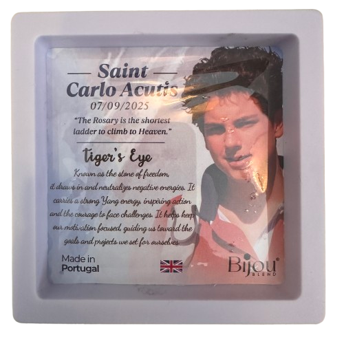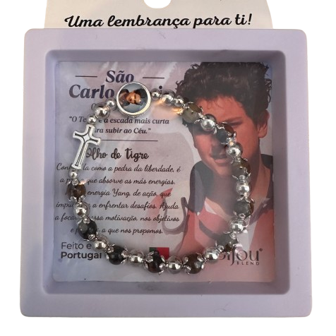 Pulseira de São Carlo Acutis, em pedra de olho tigre.