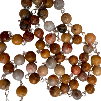 Terço em Pedra Semipreciosa Ágata Crazy.